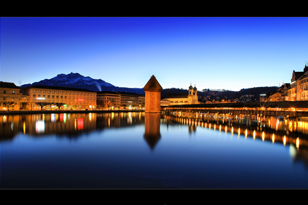 卢塞恩古城丨走过 夜色轻柔下的贝卡尔桥